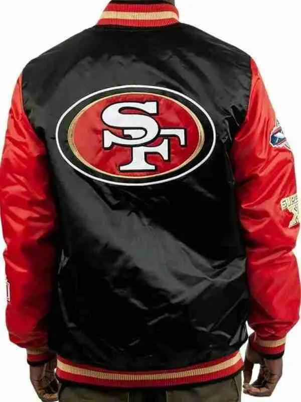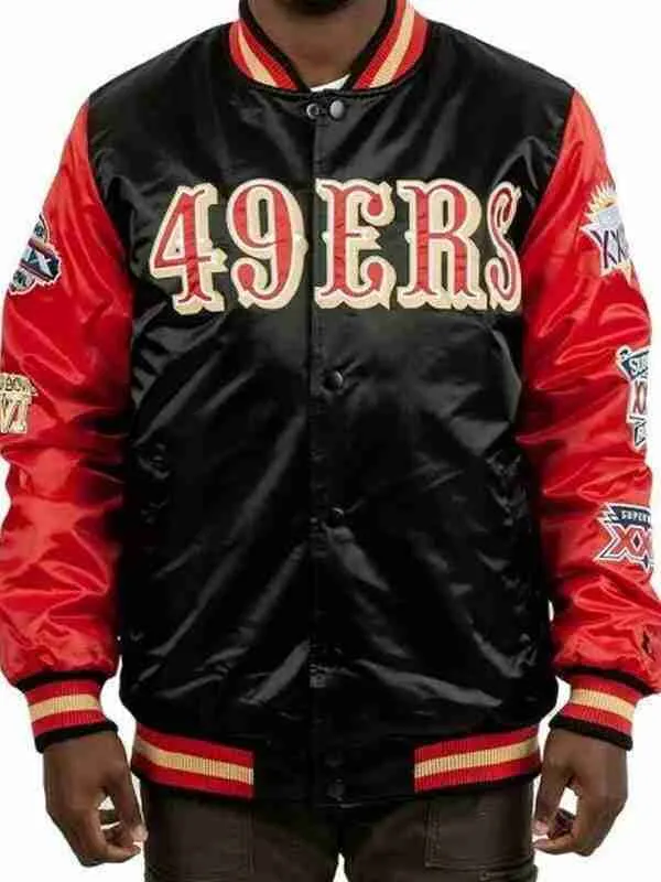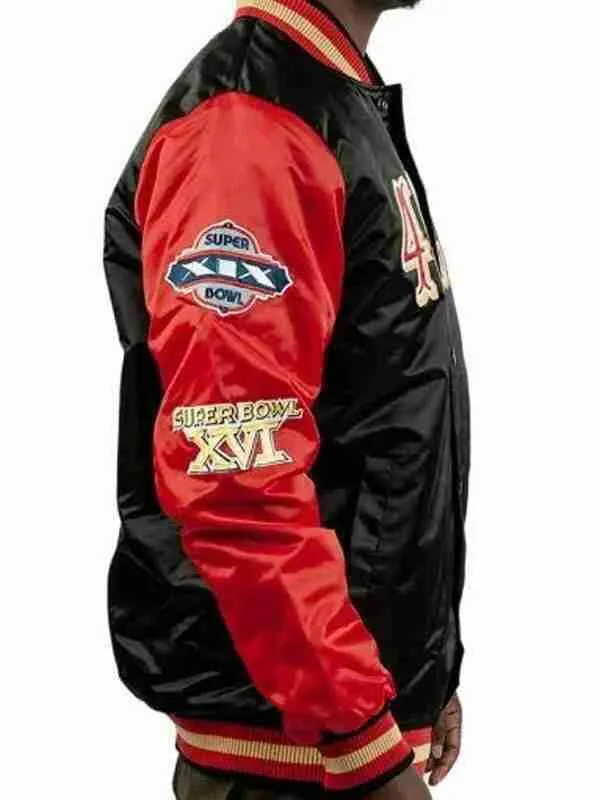 This vibrant red and black jacket, inspired by the energy and style of San Francisco, is the perfect blend of classic athletic charm and modern sophistication. Made from premium satin fabric, the jacket features a sleek, smooth finish that adds a luxurious touch while being durable enough to withstand regular wear. Satin has a natural sheen that catches the light beautifully, giving the jacket a rich, polished appearance that can easily elevate your look, whether you’re dressing it up or keeping it casual. The combination of red and black creates a bold color contrast, offering a striking design that stands out and makes a statement while still maintaining a versatile, fashionable edge.