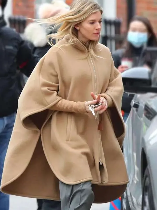 Conclusion: The jacket inspired by Sienna Miller is the perfect balance of sophistication, comfort, and style. The wool fabric provides warmth and durability, while the viscose lining ensures comfort and ease of wear. The stand-up collar, zipper closure, and brown color combine to create a timeless look that can be dressed up or down for various occasions. With practical pockets and full-length sleeves, this jacket offers both functionality and style. Whether you’re heading to a casual outing or dressing up for a night out, this jacket will keep you looking fashionable and feeling comfortable.