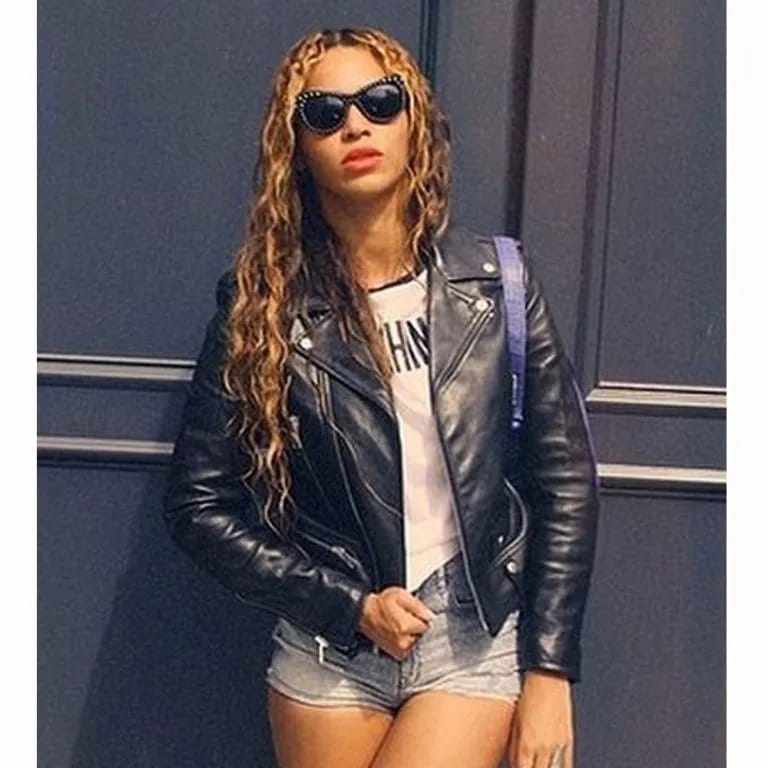 Take on Beyoncé’s tough and stylish look with this famous cropped leather jacket with a biker look. This jacket, which is made from high-quality real leather, is perfect for people who want to add a statement piece to their wardrobe. It combines edgy chic with bold style. It looks casually cool because it’s black, which makes it a versatile piece that goes with both casual and dressier outfits.