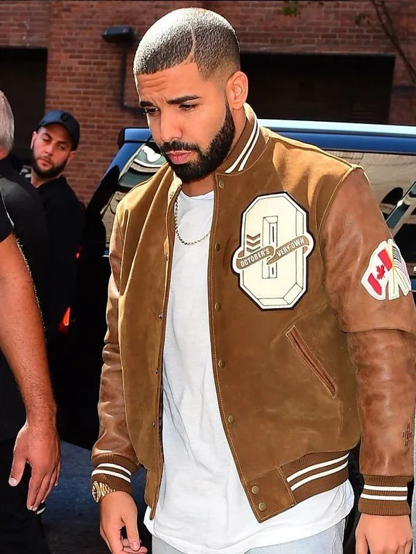 The Drake-inspired suede leather jacket is a stylish and sophisticated piece of outerwear, blending high-end fashion with practical design. Crafted from premium suede leather for the exterior, this jacket offers a rich texture and durable wear, while the viscose lining inside ensures a comfortable, soft experience. With a buttoned closure, a rib-knit collar, and full-length leather sleeves with rib-knit cuffs, this jacket captures a perfect balance between style and functionality. Its unique design and classic brown color make it a versatile addition to any wardrobe, whether you’re dressing up for an evening out or adding flair to a casual look.