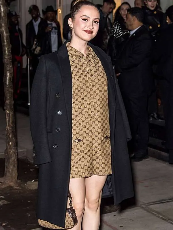 In conclusion, this black wool jacket inspired by Maude Apatow is a perfect blend of classic sophistication and modern functionality. The luxurious wool fabric provides warmth and durability, while the viscose lining ensures comfort. The double-breasted buttoned closure and lapel collar give the jacket a polished, timeless look, making it suitable for various occasions. With practical pockets and full-length sleeves, this jacket is not only stylish but also functional, offering both style and comfort for everyday wear. Whether you’re dressing up for a night out or looking to add a refined touch to your casual outfits, this jacket is a must-have addition to your wardrobe.